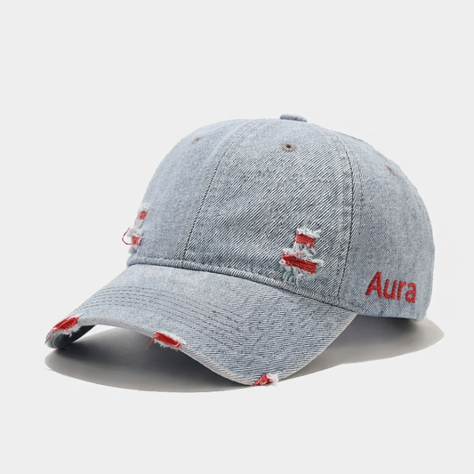 Aura - Vintage Washed Denim Cap – Unisex Street Style Snapback